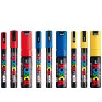Posco Marker Sanetomo Posca Rotuladores de pintura acrílica, juego de colores primarios (rojo, azul,