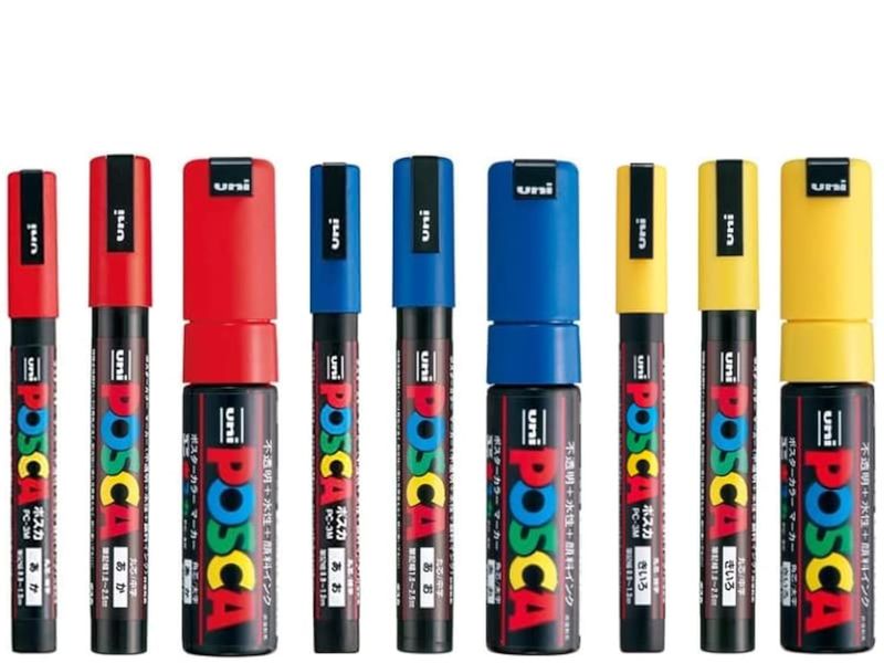 ARTE, LIBRERÍA Y OFICINAMATERIALES DE ARTEPosco Marker Sanetomo Posca Rotuladores de pintura acrílica, juego de colores primarios (rojo, azul,