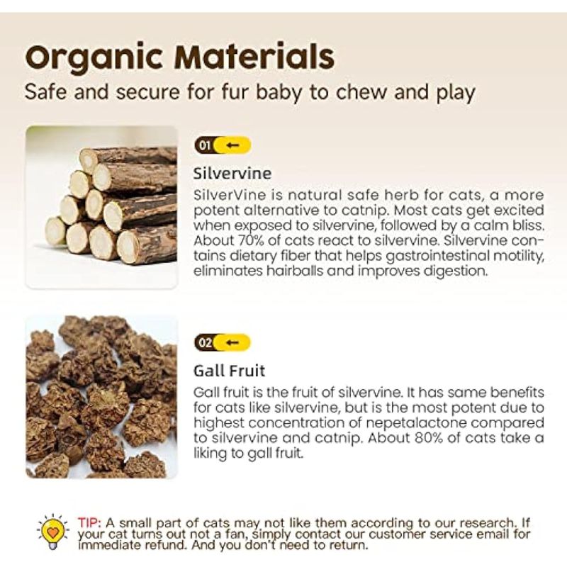 MASCOTASGATOSAccesorios para GatosPotaroma Silvervine - Paquete de 3 juguetes para gatos con hierba gatera, juguetes masticables para