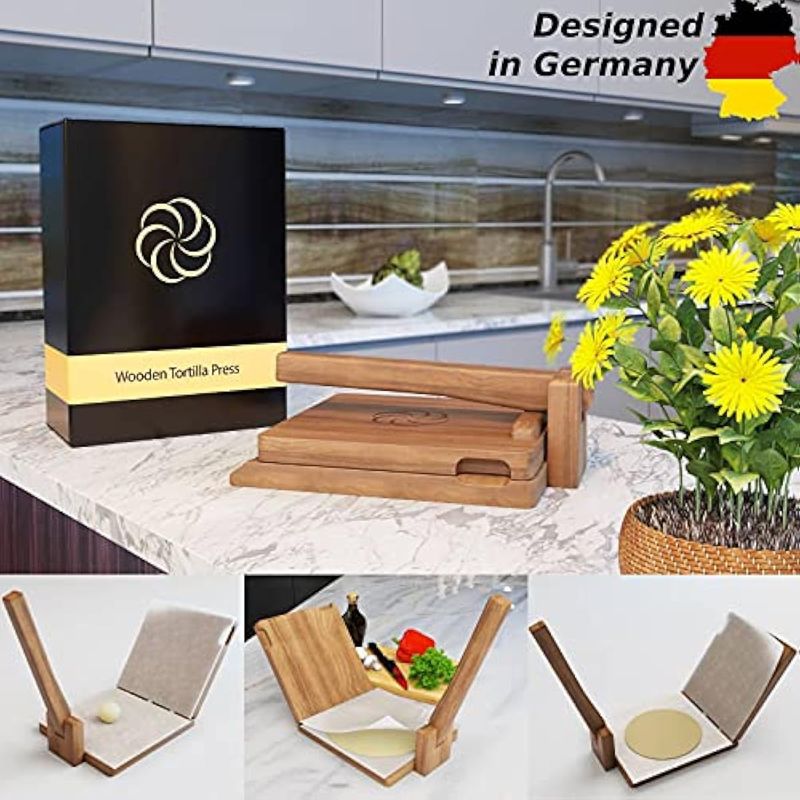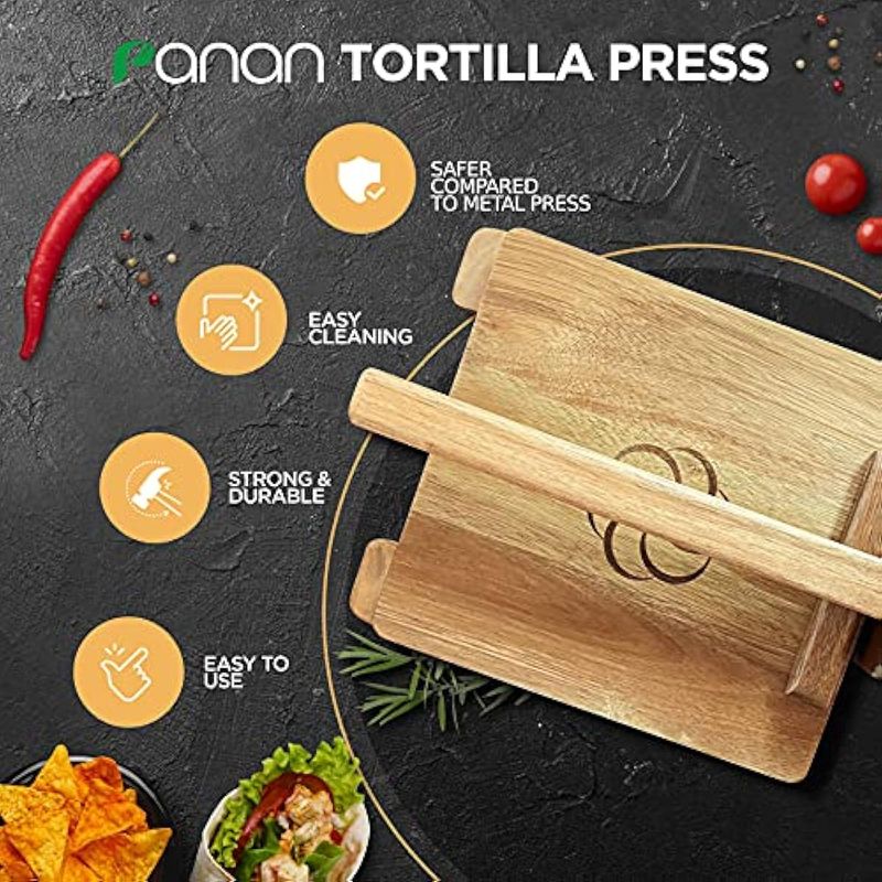 Prensa de tortilla mexicana de madera hecha de madera de acacia natural de grado alimenticio,