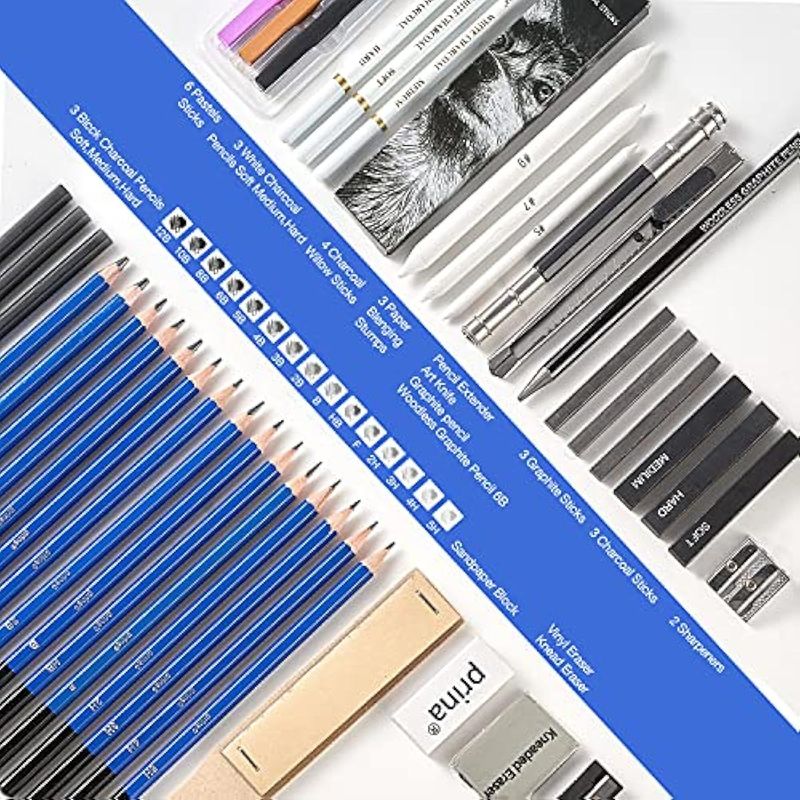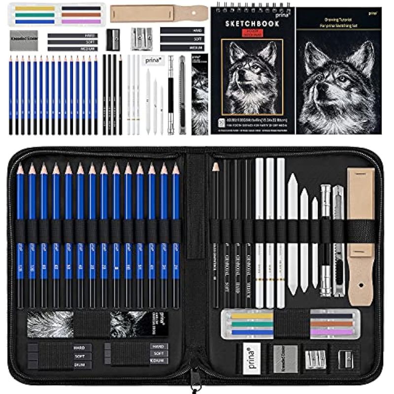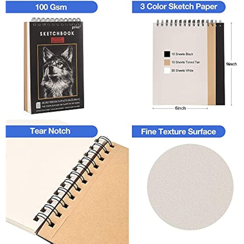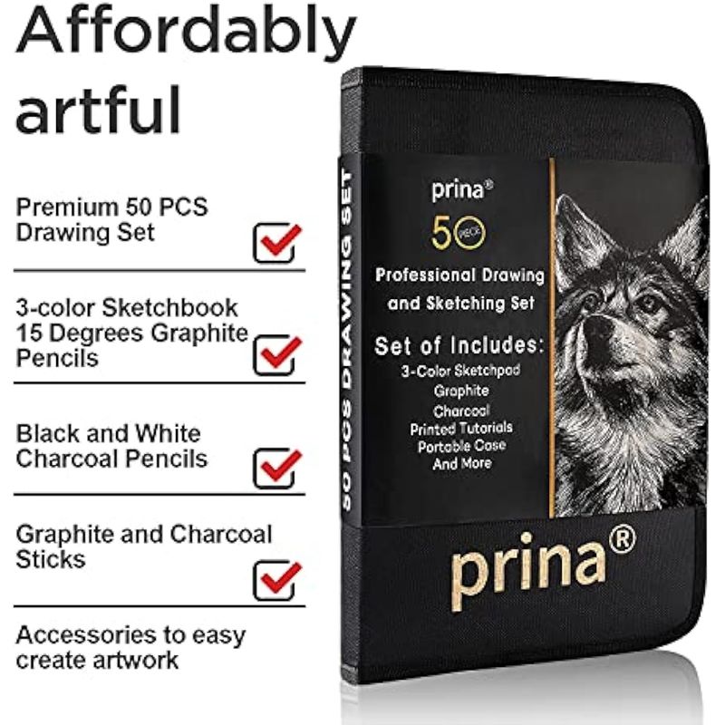 Prina Paquete de 50 kits de dibujo para bocetos, suministros de boceto con cuaderno de bocetos de 3