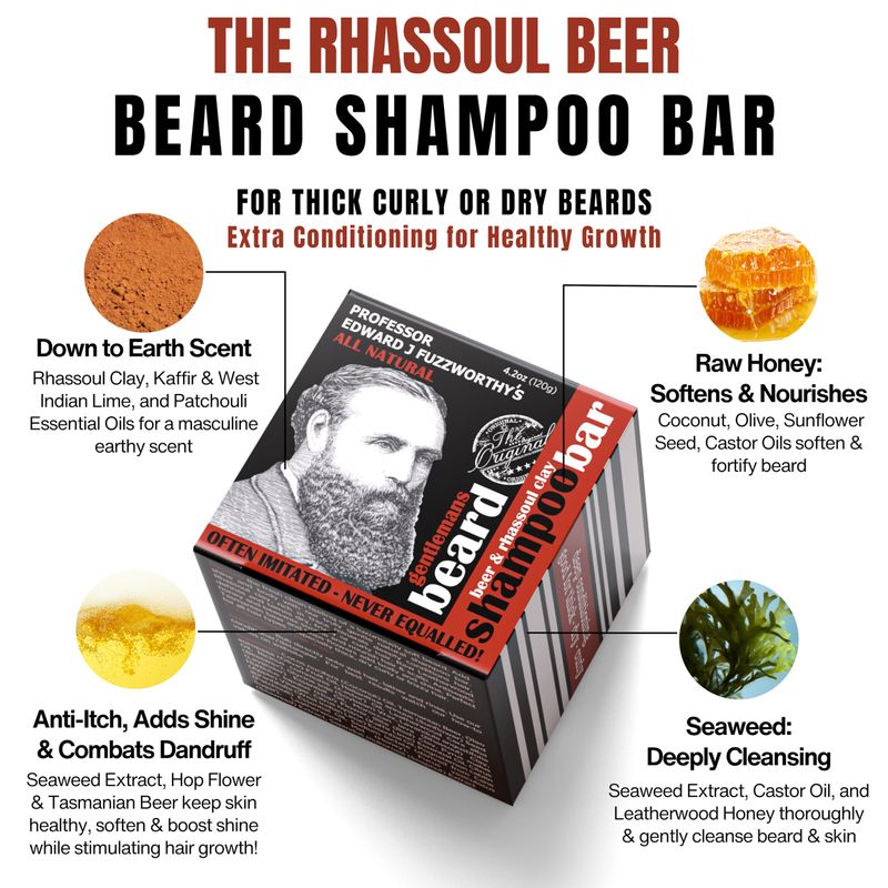 Professor Fuzzworthy's - Barra de champú para barba extra suave y saludable, domina la barba con