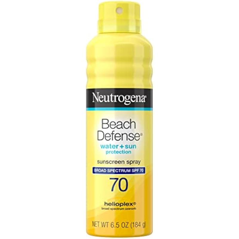 Help give your skin superior sun protection from harsh summer elements with Neutrogena Beach Defense Spray Body Sunscreen with Broad Spectrum SPF 70 for superior UVAUVB protection. Ideal for active families, this beach-strength sunscreen spray for face and body is clinically proven to help defend against the signs of sun damage. Plus, when used as directed with other sun protection measures, it may decrease the risk of skin cancer and early aging caused by the sun. The convenient spray sunscreen is water resistant for up to 80 minutes and is formulated with Helioplex Technology, which offers superior broad spectrum protection from skin-aging UVA rays and skin-burning UVB rays. This fast-absorbing SPF 70 sunscreen spray is lightweight and PABA-free. Convenient sunscreen spray from the #1 dermatologist-recommended suncare brand. Packaging and formulation may vary. New formula contains no oxybenzone and uses avobenzone for optimal protection from UVA and UVB rays.