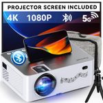 Proyector con WiFi y Bluetooth, 5G WiFi nativo 1080P/280 ANSI Proyector de película con pantalla,