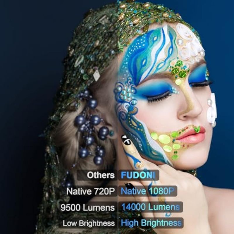 Proyector con WiFi y Bluetooth, FUDONI Upgrade 5G WiFi Native 1080P 14000L 4K compatible, proyector