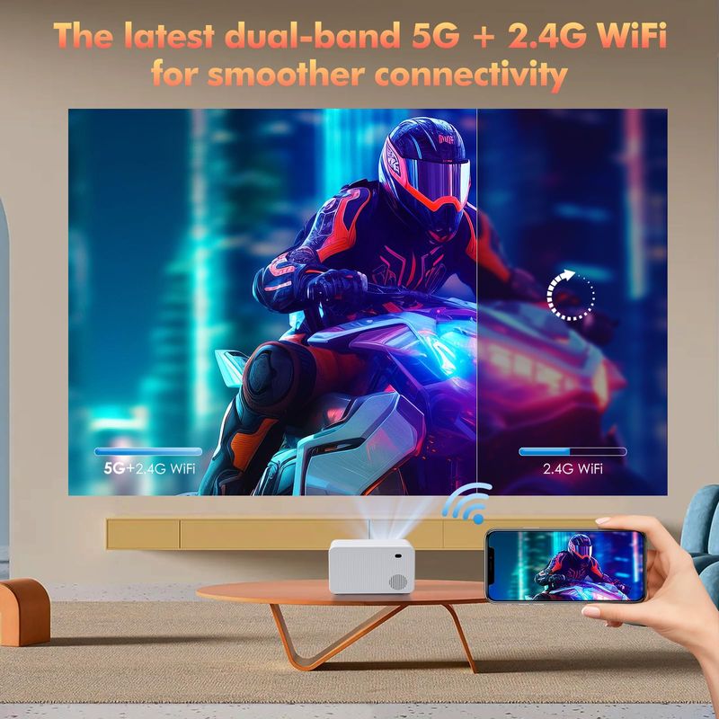Proyector con Wifi y Bluetooth, Native 1080P 15000L Mini proyector de video de cine en casa,