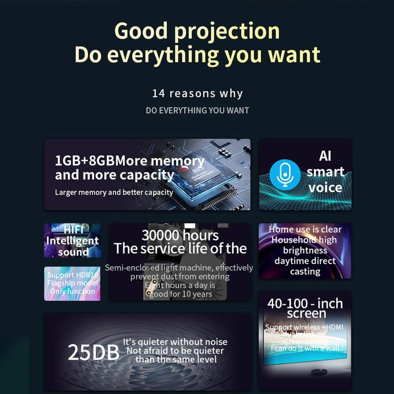 TV Y VIDEOPROYECTORESProyector inalámbrico con WiFi y Bluetooth, control remoto digital, resolución 1280 x 720p proyector