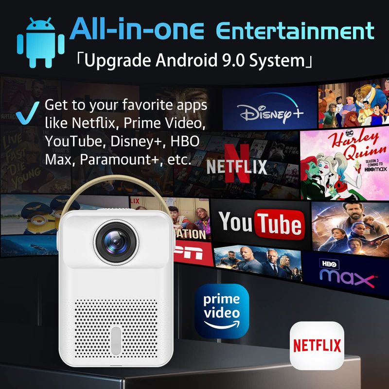 PROYECTOR INTELIGENTE CON SISTEMA ANDROID 4K, MINI PROYECTOR DE 15000 LúMENES CON WIFI Y BLUETOOTH, PROYECTOR 4K PARA EXTERIORES MAX 300 PULGADAS, SOPORTE DE ZOOM KEYSTONE DIGITAL ±45° 4D, COMPATIBLE