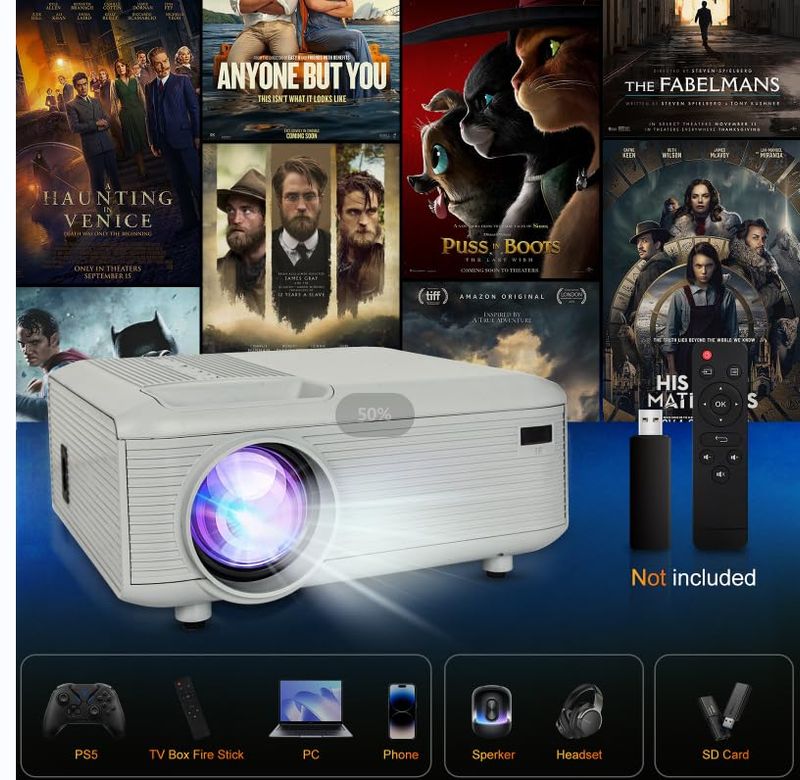 Diseño ampliamente compatible y portátil, incluyendo HDMI, USB e interfaces de audio de 0.138 in, lo que facilita la conexión de dispositivos de TV, USB, PC, computadoras portátiles, teléfonos iOS y Android, PS5 y altavoces externos para reproducir tus películas favoritas, programas de televisión, actuaciones en vivo y partidos de fútbol en casa. Además, el tamaño compacto de 6.3 x 5.5 x 7.1 in y el diseño ligero hacen que este proyector de película LED ahorre espacio y sea fácil de llevar.
