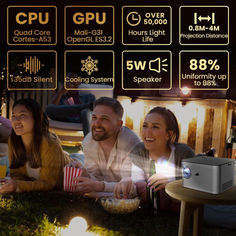 Proyector Native 1080P Full HD 4K, proyector para exteriores, proyector de película de 800 ANSI,