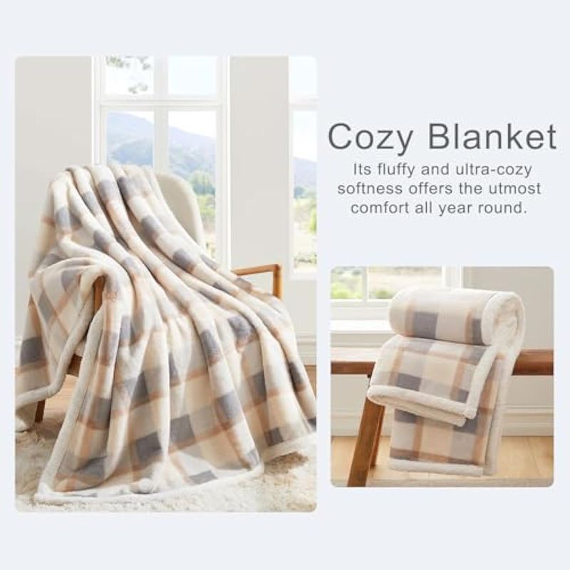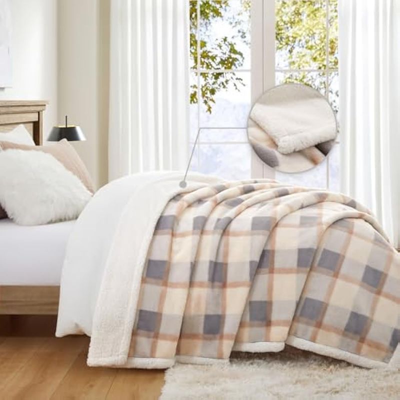 HOGARBLANQUERIACUBRECAMAPU MEI Manta de forro polar Sherpa de 60 x 80 pulgadas, reversible, esponjosa, grande, manta de