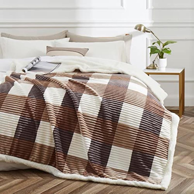 PU MEI Manta de forro polar Sherpa de 60 x 80 pulgadas, reversible, esponjosa, grande, manta de - Pardo
