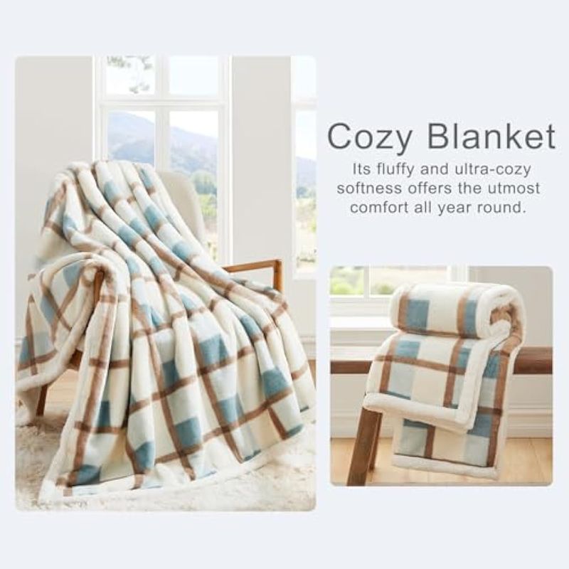 Llamativas mantas de cama a cuadros: aquí vienen rejillas escalonadas en gris, crema y azul suave, luego combinan con tela de franela de felpa suave. Moderno pero elegante, clásico pero popular, no solo puede añadir comodidad y calidez, sino también una gran decoración para tu hogar. Además, la excelente tecnología de impresión y teñido hace que no se decolore fácilmente después de varios lavados.