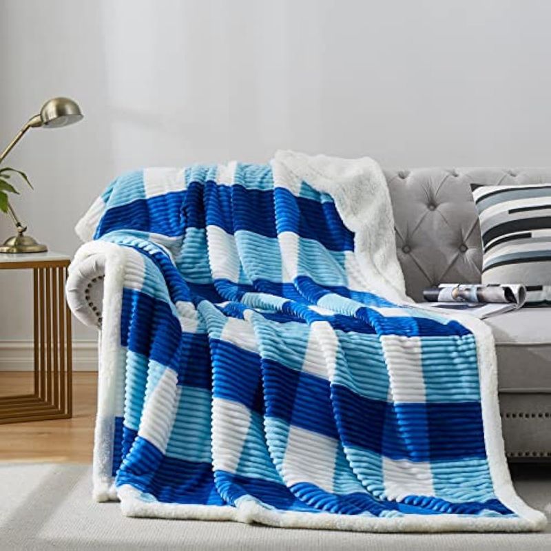Llamativas mantas de cama a cuadros: aquí vienen rejillas escalonadas en gris, crema y azul suave, luego combinan con tela de franela de felpa suave. Moderno pero elegante, clásico pero popular, no solo puede añadir comodidad y calidez, sino también una gran decoración para tu hogar. Además, la excelente tecnología de impresión y teñido hace que no se decolore fácilmente después de varios lavados.