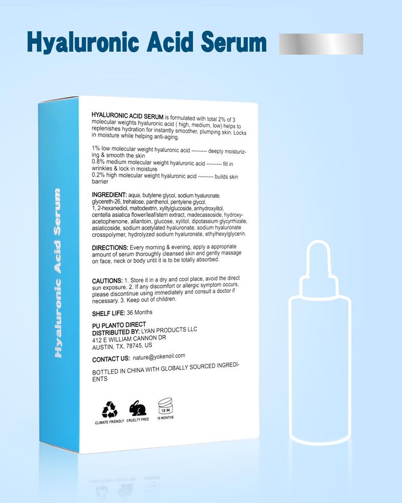 PU PLANTO B5 - Suero de ácido hialurónico para cara, 2 onzas, ácido hialurónico triple puro, 2% con