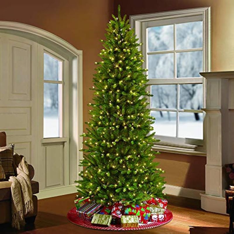Puleo International Árbol de Navidad artificial de abeto Fraser delgado preiluminado de 6.5 pies con