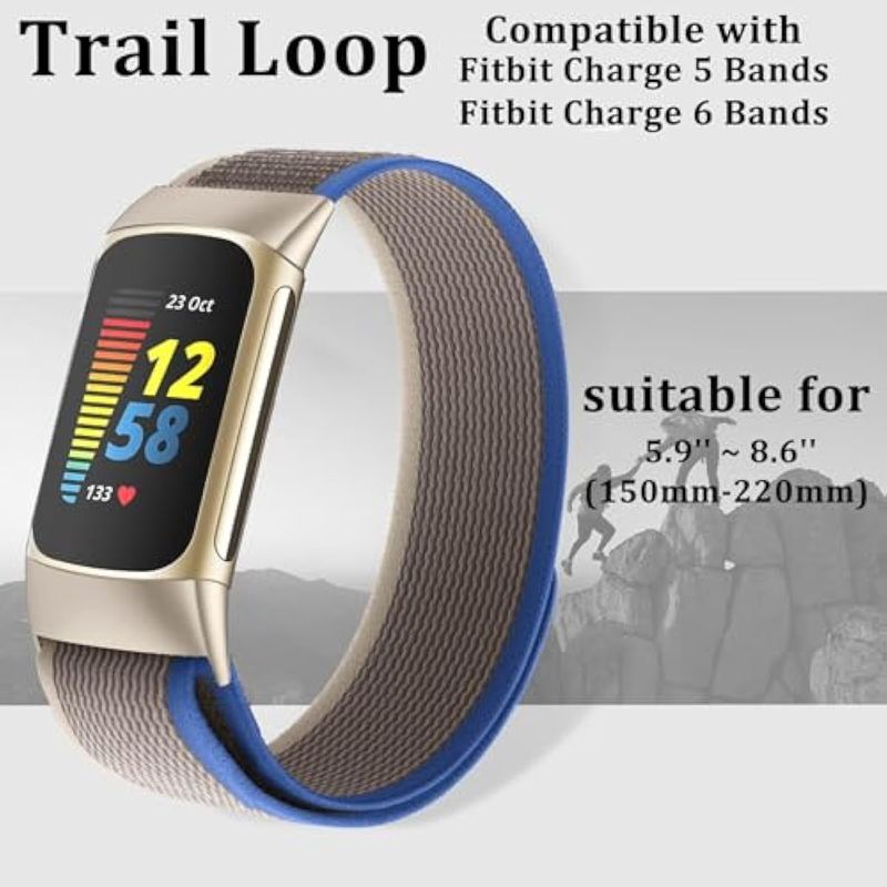 Pulsera elástica de nailon compatible con Fitbit Charge 6/Fitbit Charge 5 bandas para mujeres y - Pardo