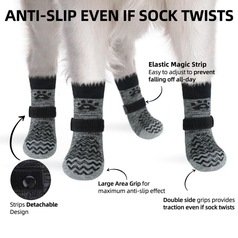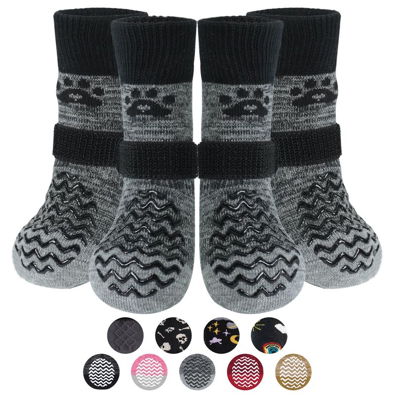 MASCOTASPERROSAccesorios para PerrosPUPTECK Calcetines antideslizantes para perros, 2 pares con doble agarre para suelos de madera dura,