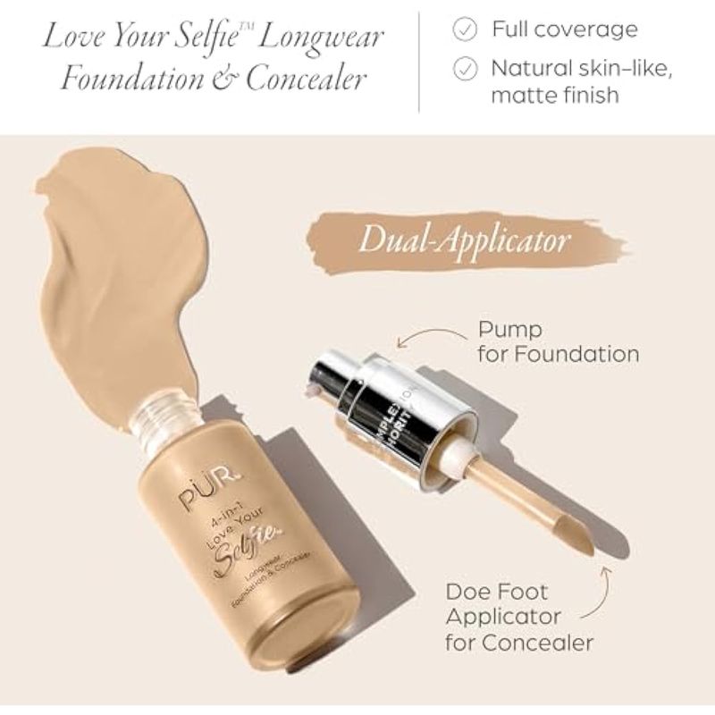 PUR Beauty - Base y corrector 4 en 1 Love Your Selfie, base de maquillaje líquida de cobertura