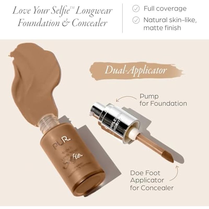 PUR Beauty - Base y corrector 4 en 1 Love Your Selfie, base de maquillaje líquida de cobertura