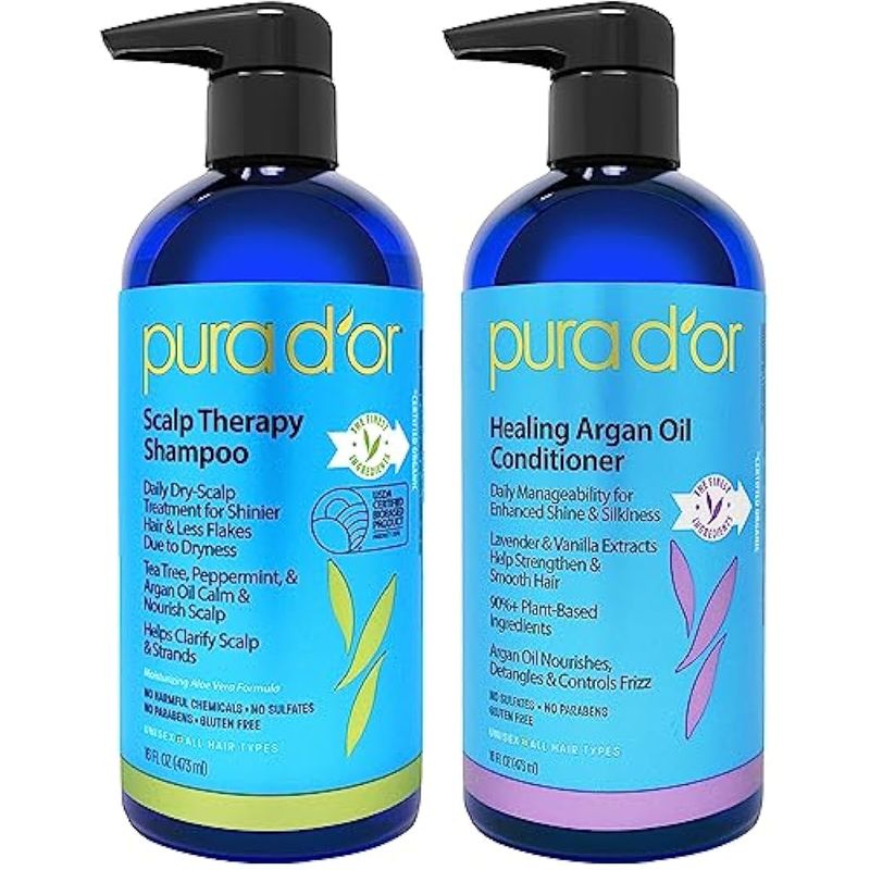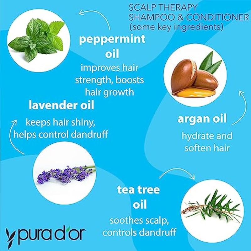 PURA D'OR Juego de champú y acondicionador para terapia del cuero cabelludo (16 onzas x 2) seco y