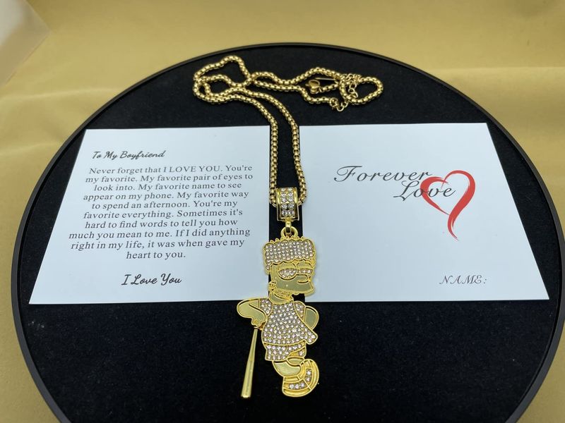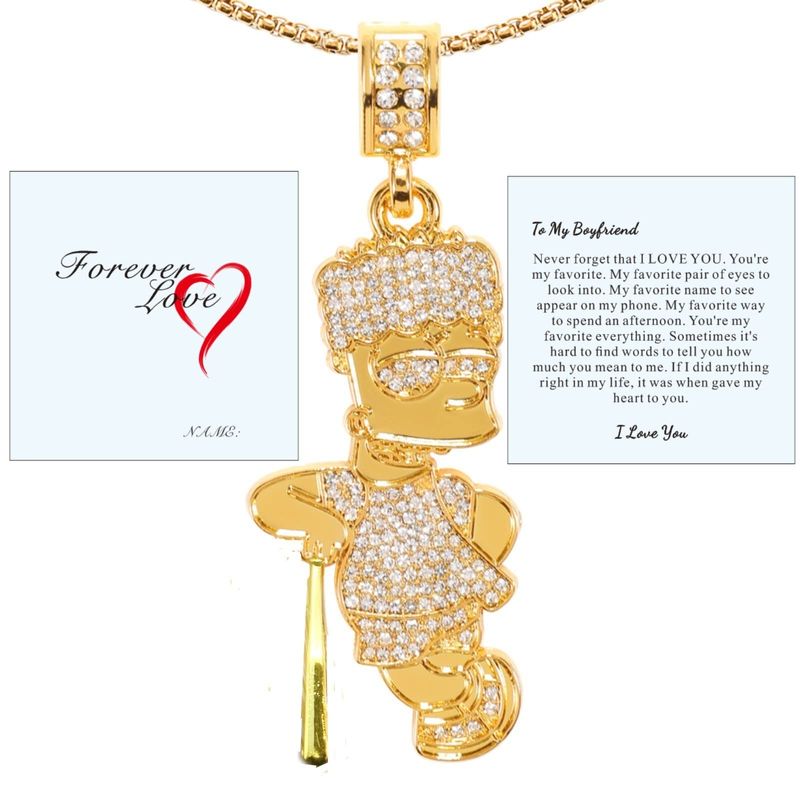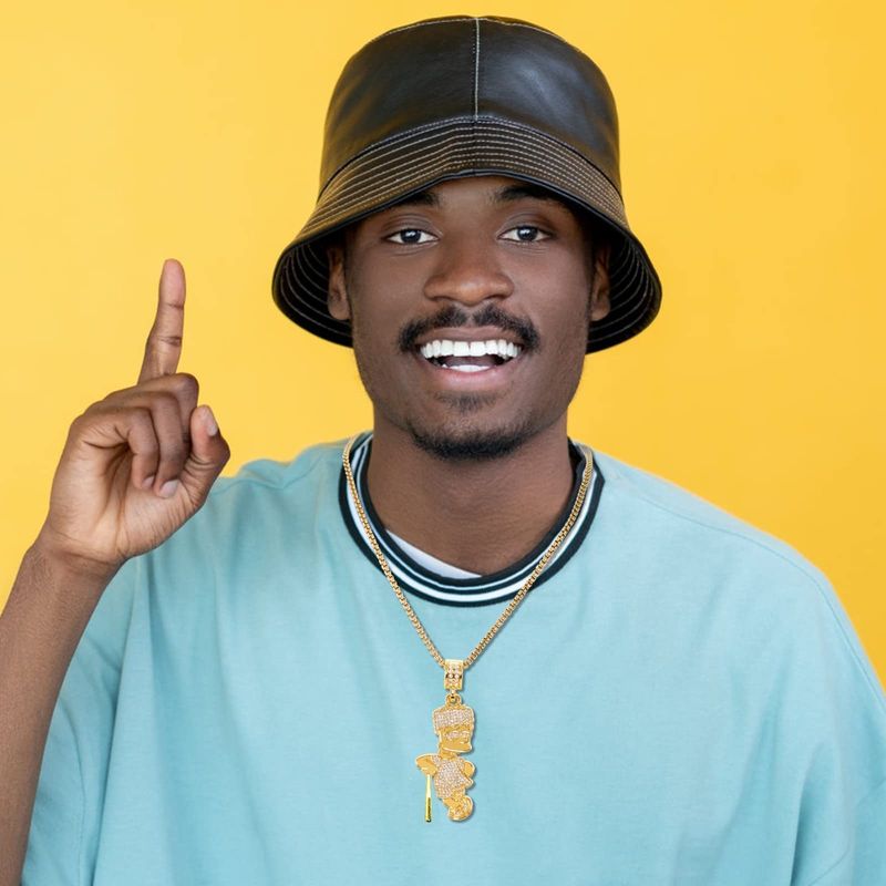 putouzip Bart Chain Necklace 18K Gold Plated Fully Iced Out Stainless Steel Pendant For Men Boys
