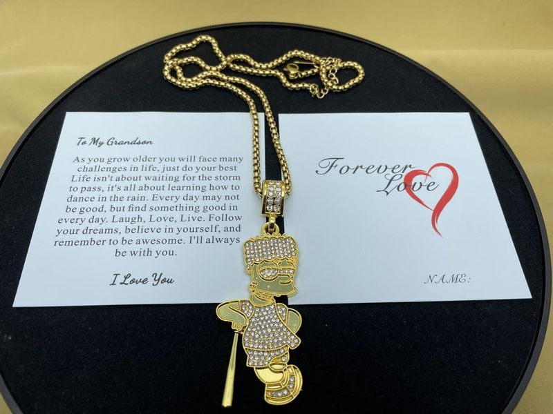 putouzip Bart Chain Necklace 18K Gold Plated Fully Iced Out Stainless Steel Pendant For Men Boys