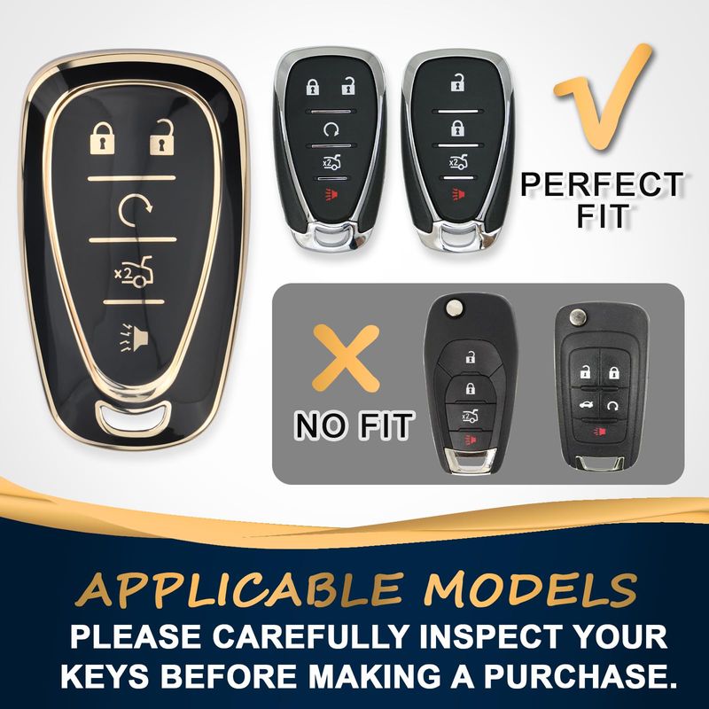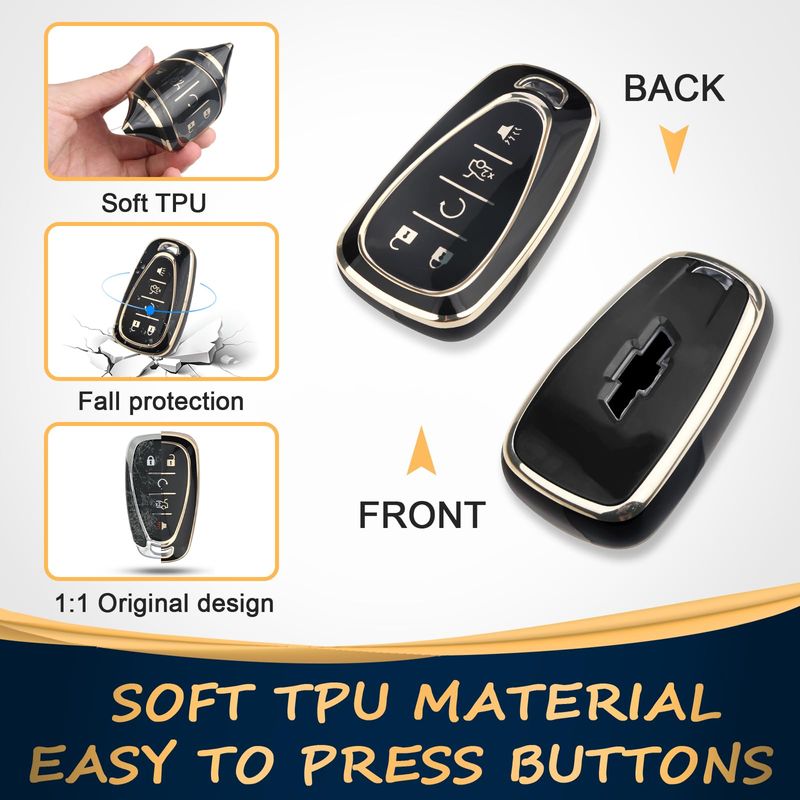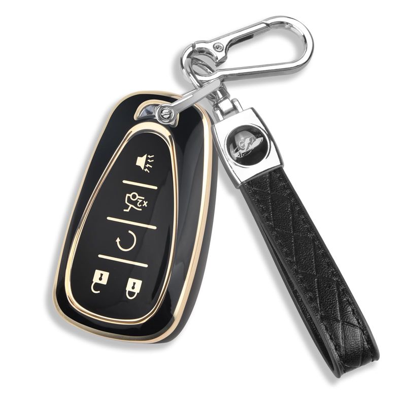 QBUC Funda para llavero Chevy con llavero de poliuretano termoplástico suave y ribete dorado,