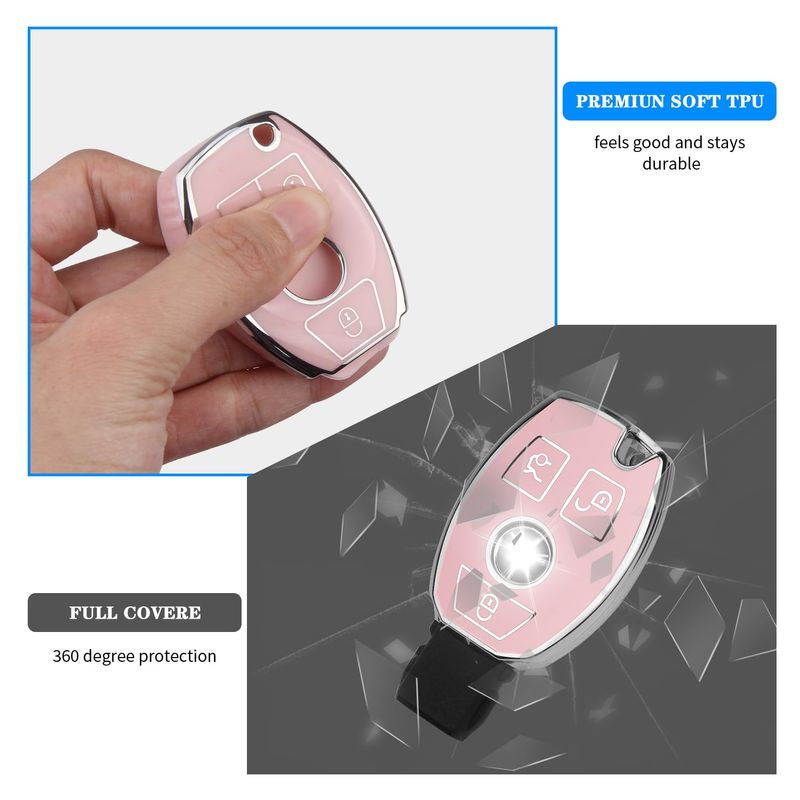QBUC Funda para llavero de Mercedes Benz con llavero, para accesorios Mercedes Benz es compatible