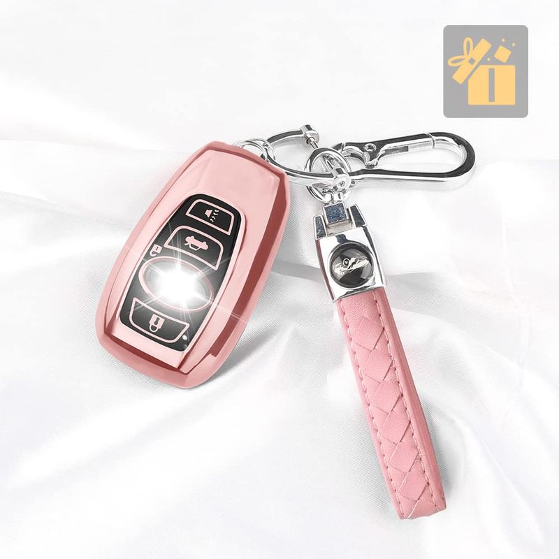 QBUC Funda para llavero Subaru con llavero de cuero, apta para Forester Crosstrek Outback Ascent