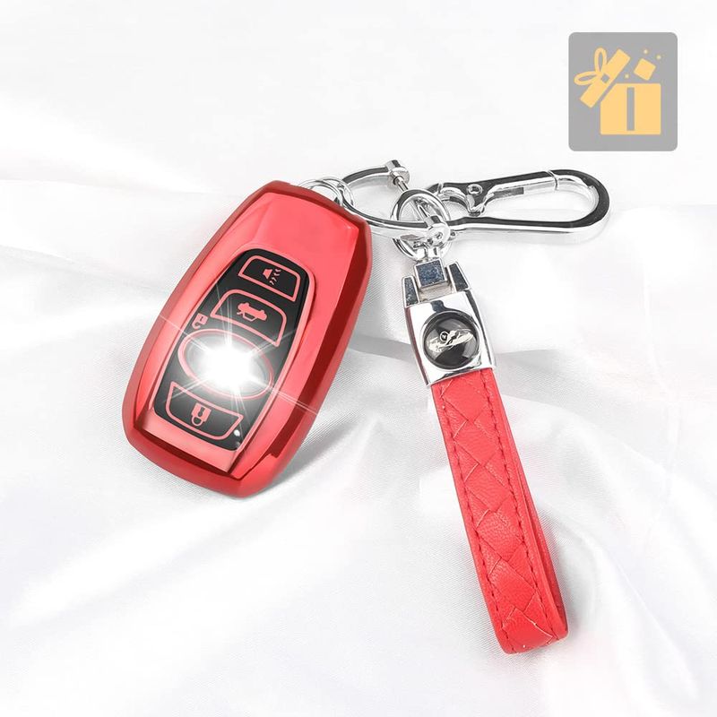 QBUC Funda para llavero Subaru con llavero de cuero, apta para Forester Crosstrek Outback Ascent