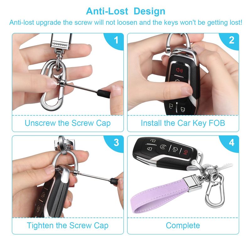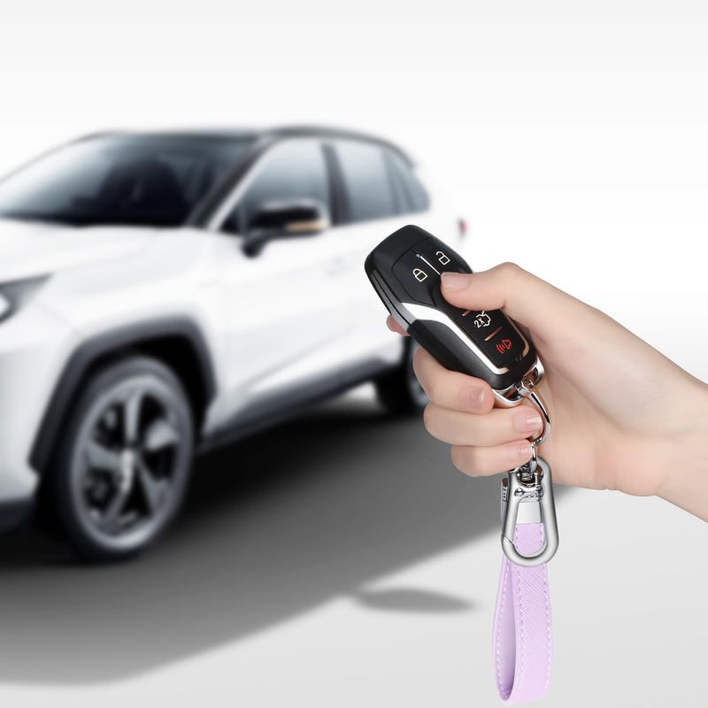 QBUC Llavero de cuero genuino para automóvil, accesorios universales de metal resistente, llavero