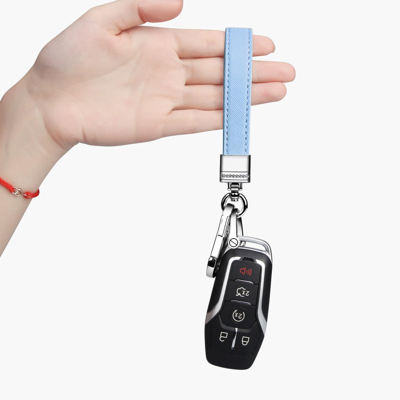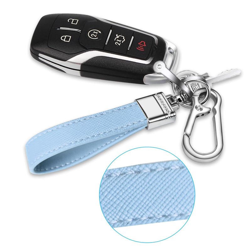 QBUC Llavero de cuero genuino para automóvil, accesorios universales de metal resistente, llavero