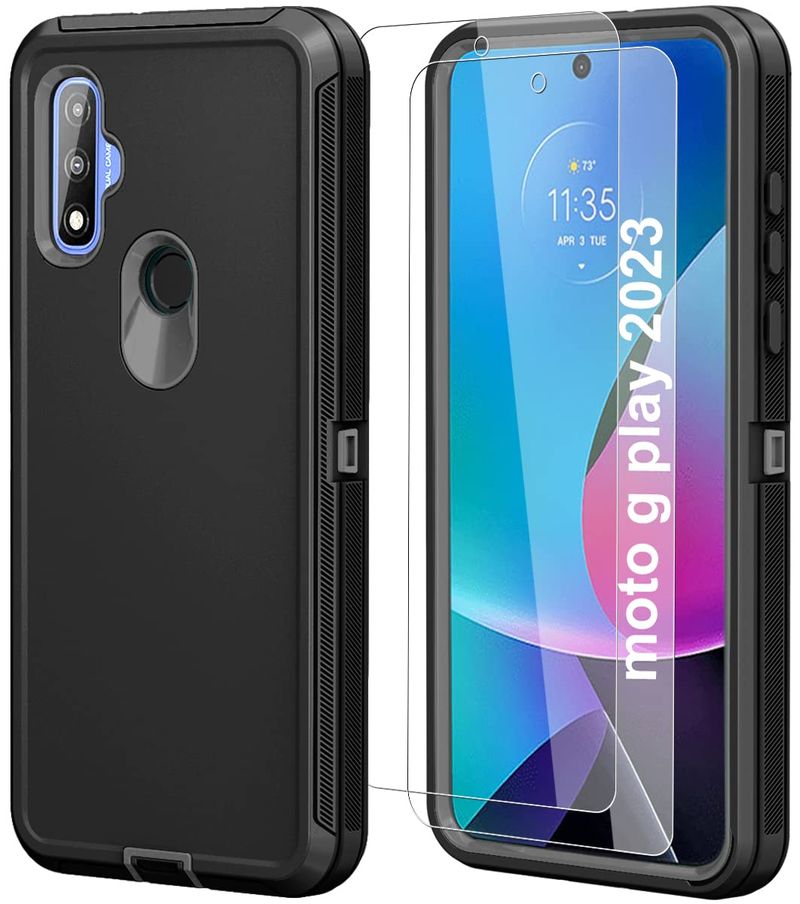 Qinmay Funda para Moto G Play 2023 con protector de pantalla HD (2 paquetes), funda para teléfono
