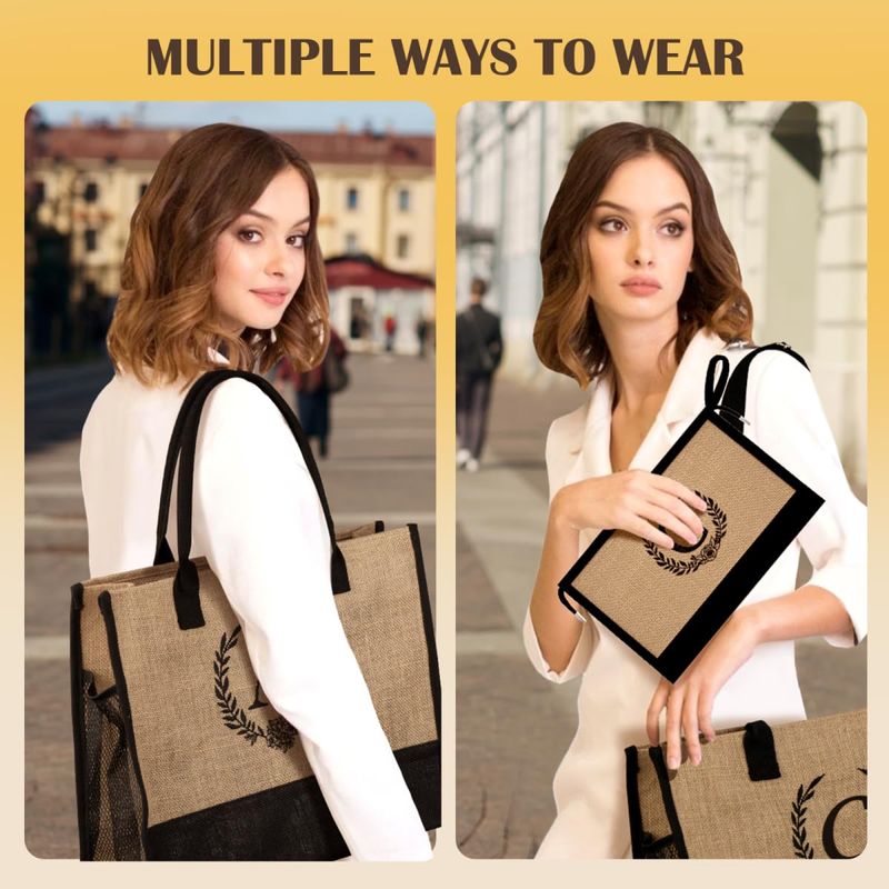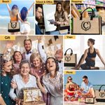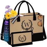 QLOVEA INITIAL CANVAS TOTE BAG MAKEUP BAG, BEACH BAG WITH ZIPPER, PERSONALIZED BIRTHDAY GIFT FOR MOM GRANDMA SISTER FRIENDS