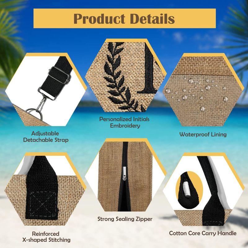 QLOVEA Initial Canvas Tote Bag Makeup Bag, Beach Bag with Zipper, Personalized Birthday Gift for Mom - Pardo