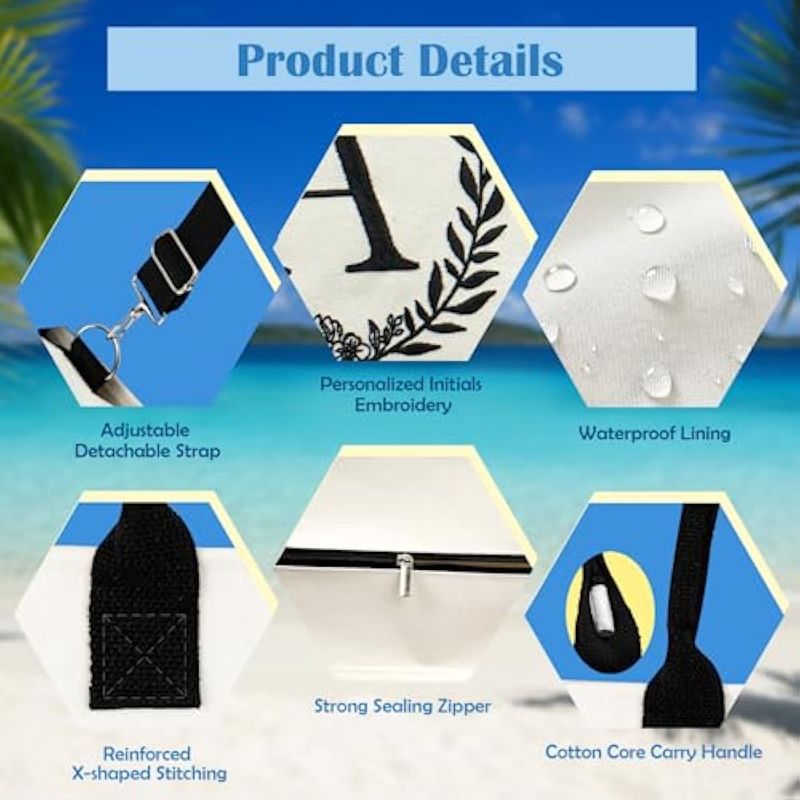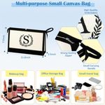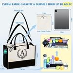 EQUIPAJEMOCHILASQLOVEA Initial Canvas Tote Bag Makeup Bag, Beach Bag with Zipper, Personalized Birthday Gift for Mom