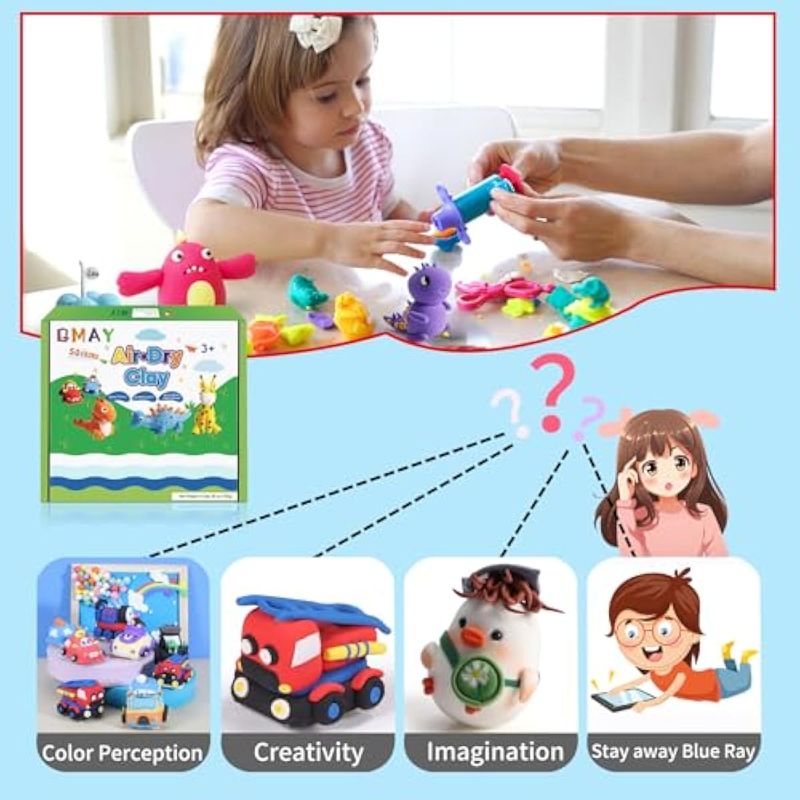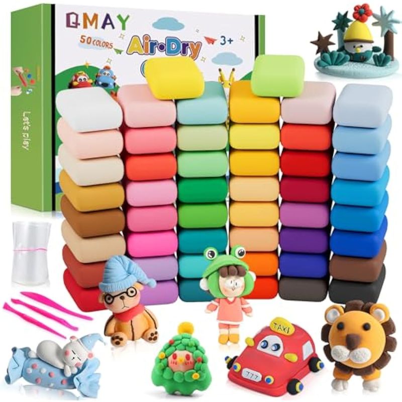 QMay Arcilla seca al aire, 50 colores, kit de iniciación de arcilla para modelar bricolaje con