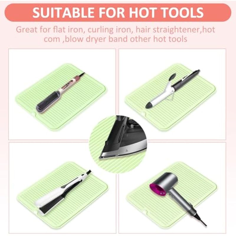 Alfombrilla resistente al calor de gran tamaño: esta alfombrilla de herramientas calientes se ha actualizado a un tamaño de 14.2 x 11 pulgadas, un tamaño más grande que las almohadillas calientes de silicona tradicionales y sostiene múltiples herramientas de peinado al mismo tiempo.