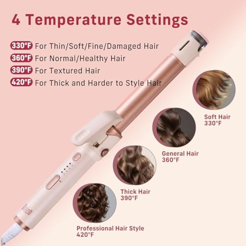 ???? [4 temperaturas ajustables] Abraza tu tipo de cabello único con confianza utilizando el alisador y rizador 2 en 1 de QUICO. Con cuatro modos de temperatura ajustables que se adaptan a diferentes texturas de cabello, encuentra tu combinación perfecta: 330°F para cabello fino, 360°F para cabello normal, 390°F para cabello grueso y 420°F para un peinado profesional. El rizador de vapor se calienta en 30 segundos, minimizando el tiempo de espera y maximizando la eficiencia del peinado.