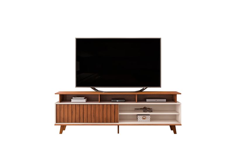 Fabricado en resistente MDF y con acabado en Blanco Miel, soporta televisores de hasta 70”. Su puerta deslizante permite un acceso práctico al espacio de guardado, mientras que su estante con detalle biselado le aporta un toque de estilo moderno. Con 180 cm de ancho, este rack ofrece espacio suficiente para equipos electrónicos, consolas y decoración, transformando tu living en un ambiente sofisticado y organizado.