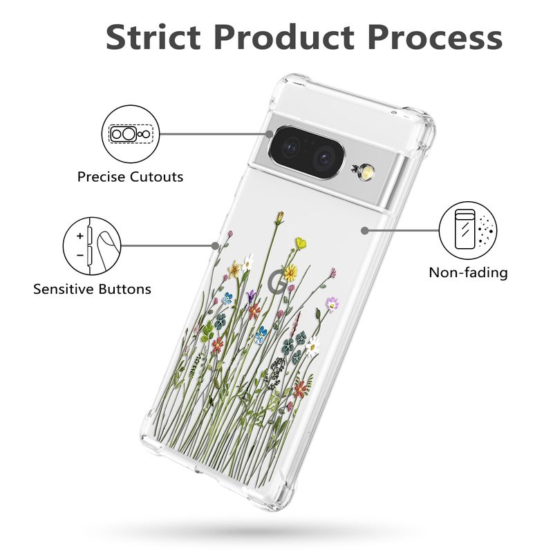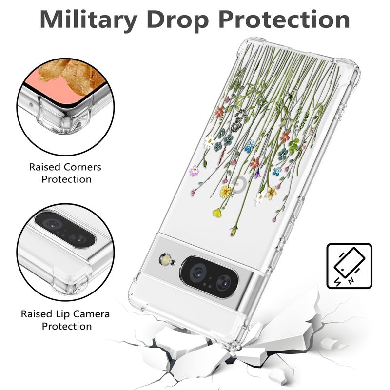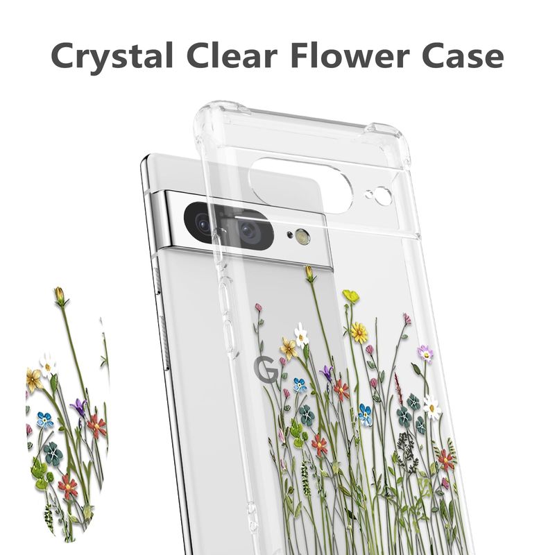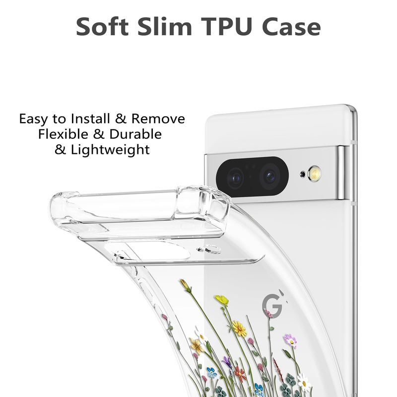 RALEAVO Funda floral para Google Pixel 7, funda de hojas transparentes delgada y bonita funda