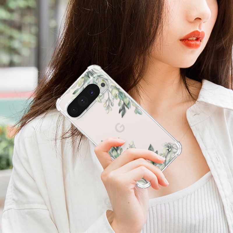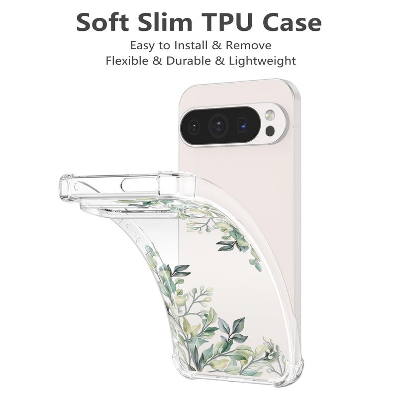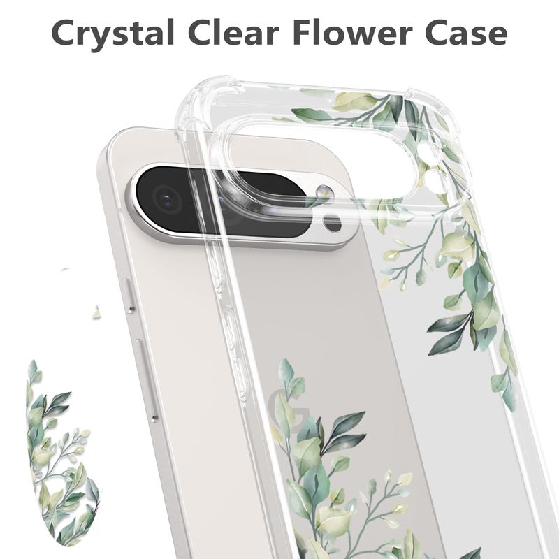 RALEAVO Funda floral para Google Pixel 7, funda de hojas transparentes delgada y bonita funda