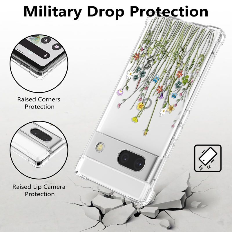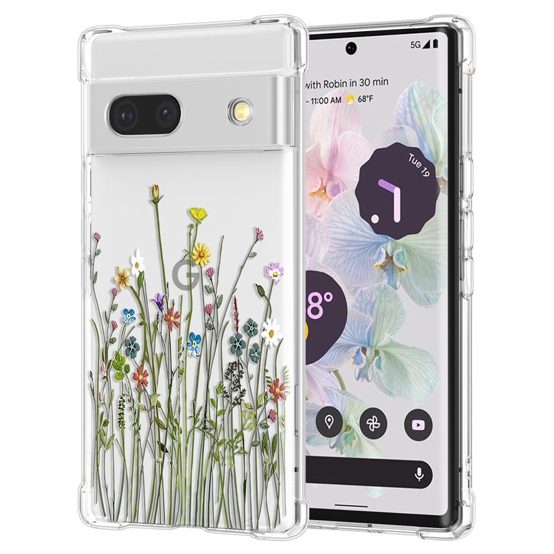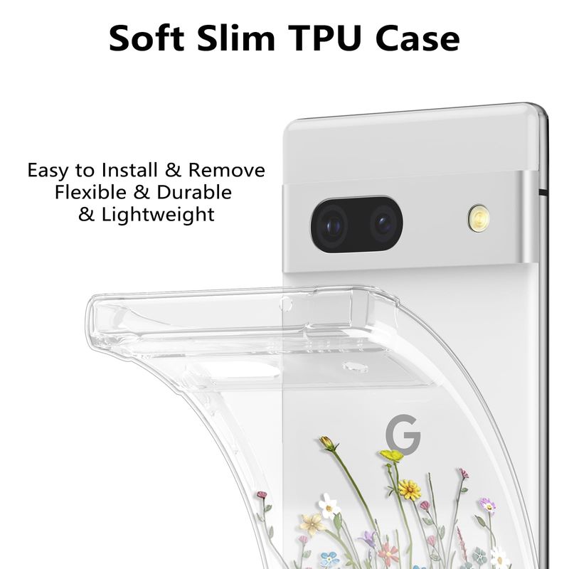 RALEAVO Funda floral para Google Pixel 7, funda de hojas transparentes delgada y bonita funda