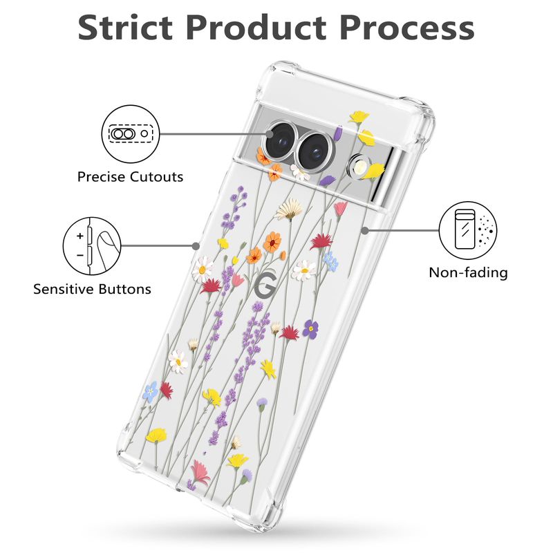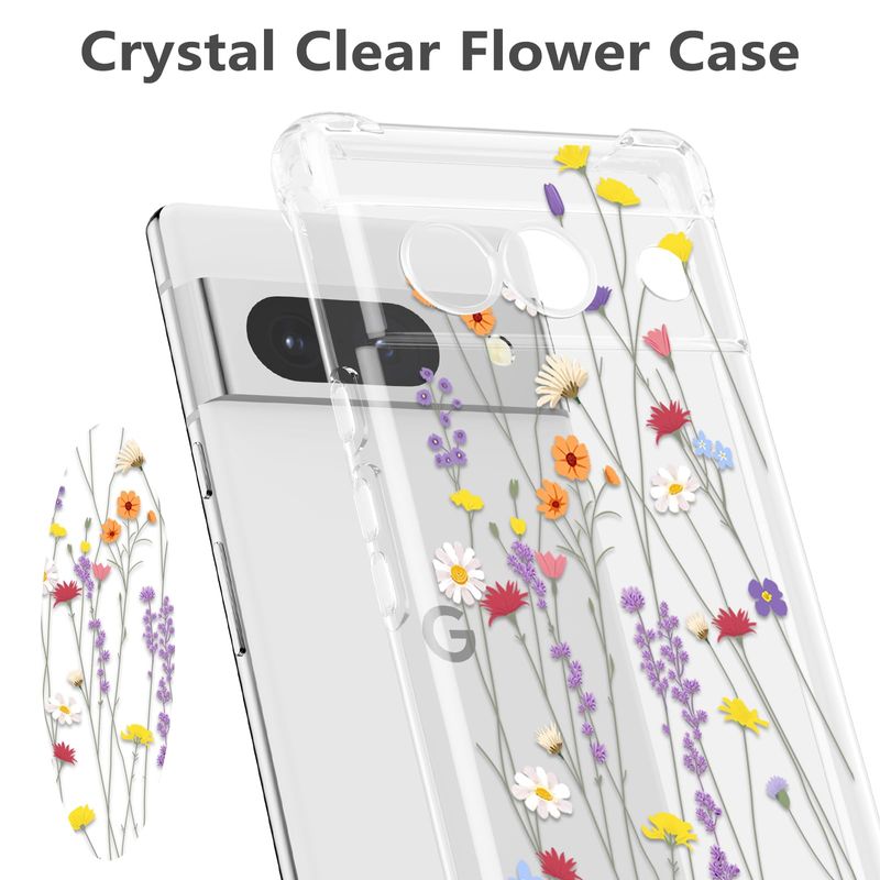 RALEAVO Funda floral para Google Pixel 7, funda de hojas transparentes delgada y bonita funda