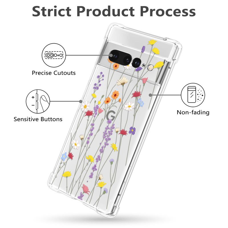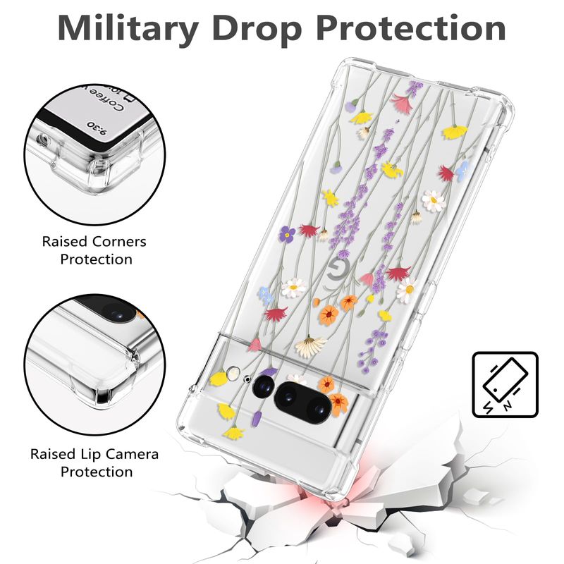 RALEAVO Funda floral para Google Pixel 7, funda de hojas transparentes delgada y bonita funda