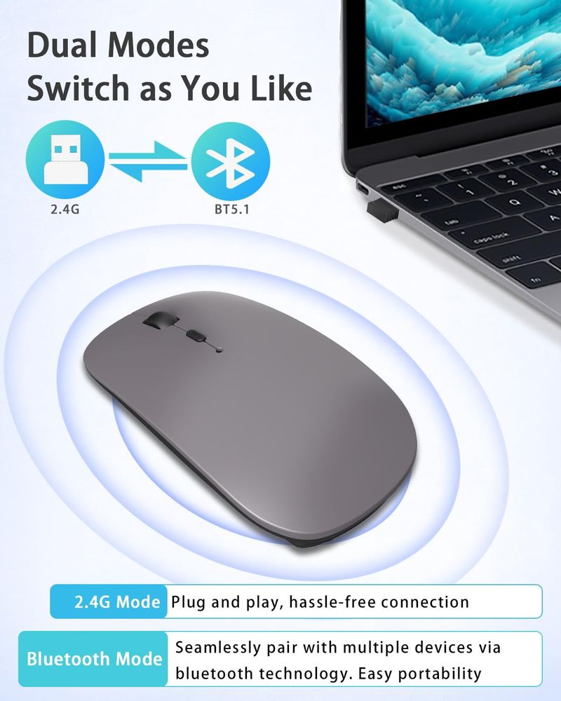 INFORMÁTICAACCESORIOS DE INFORMATICAMOUSERatón Bluetooth inalámbrico, (BT5.2/3.0 y USB 2.4G) Ratones ergonómicos portátiles de modo dual