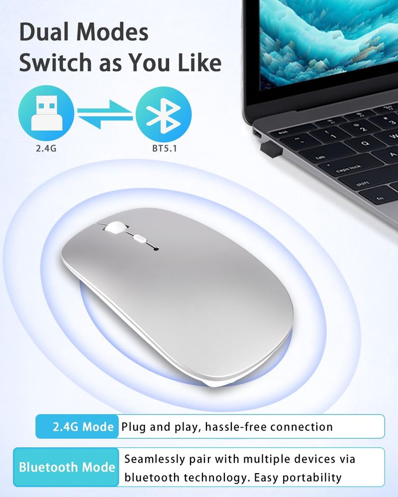 Ratón Bluetooth inalámbrico, (BT5.2/3.0 y USB 2.4G) Ratones ergonómicos portátiles de modo dual