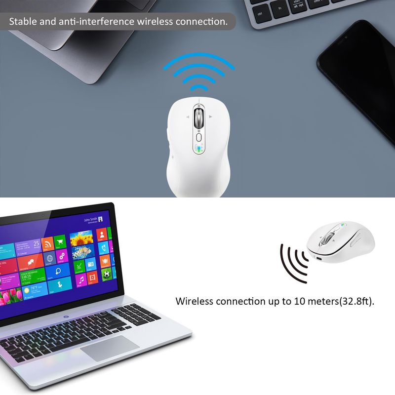 INFORMÁTICAACCESORIOS DE INFORMATICAMOUSERatón Bluetooth inalámbrico, mouse recargable portátil con cable de carga, receptor USB y dos
