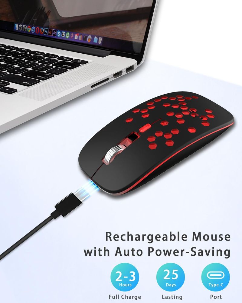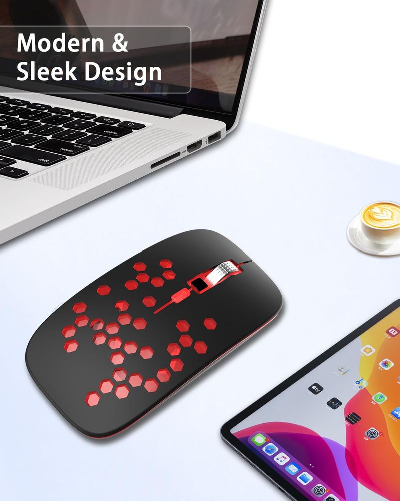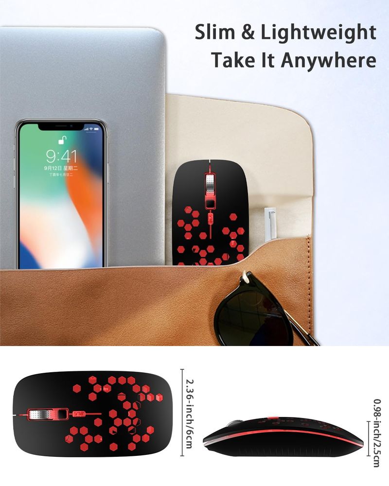 Ratón Bluetooth LED, mouse inalámbrico recargable con compatible con Macbook